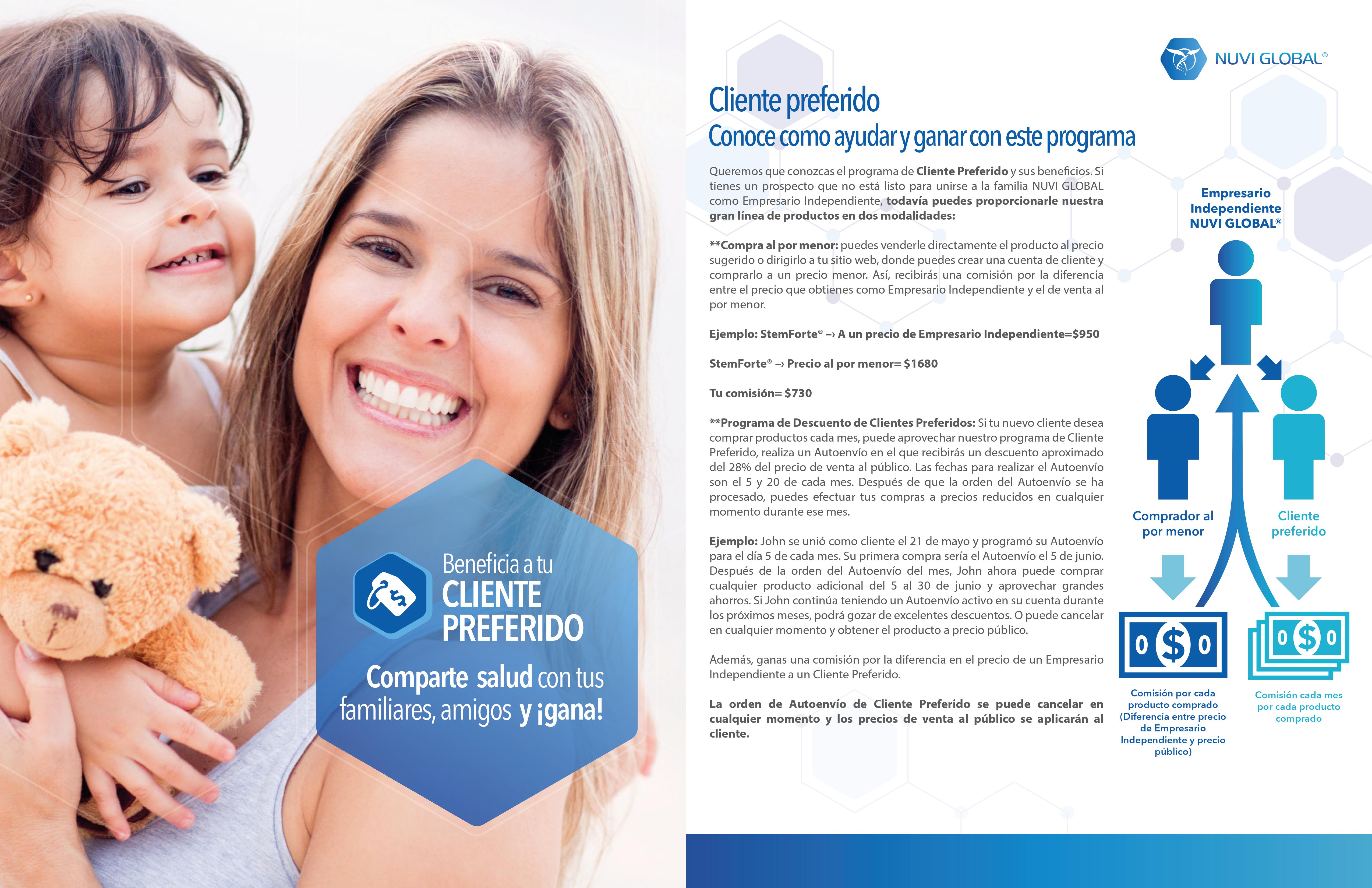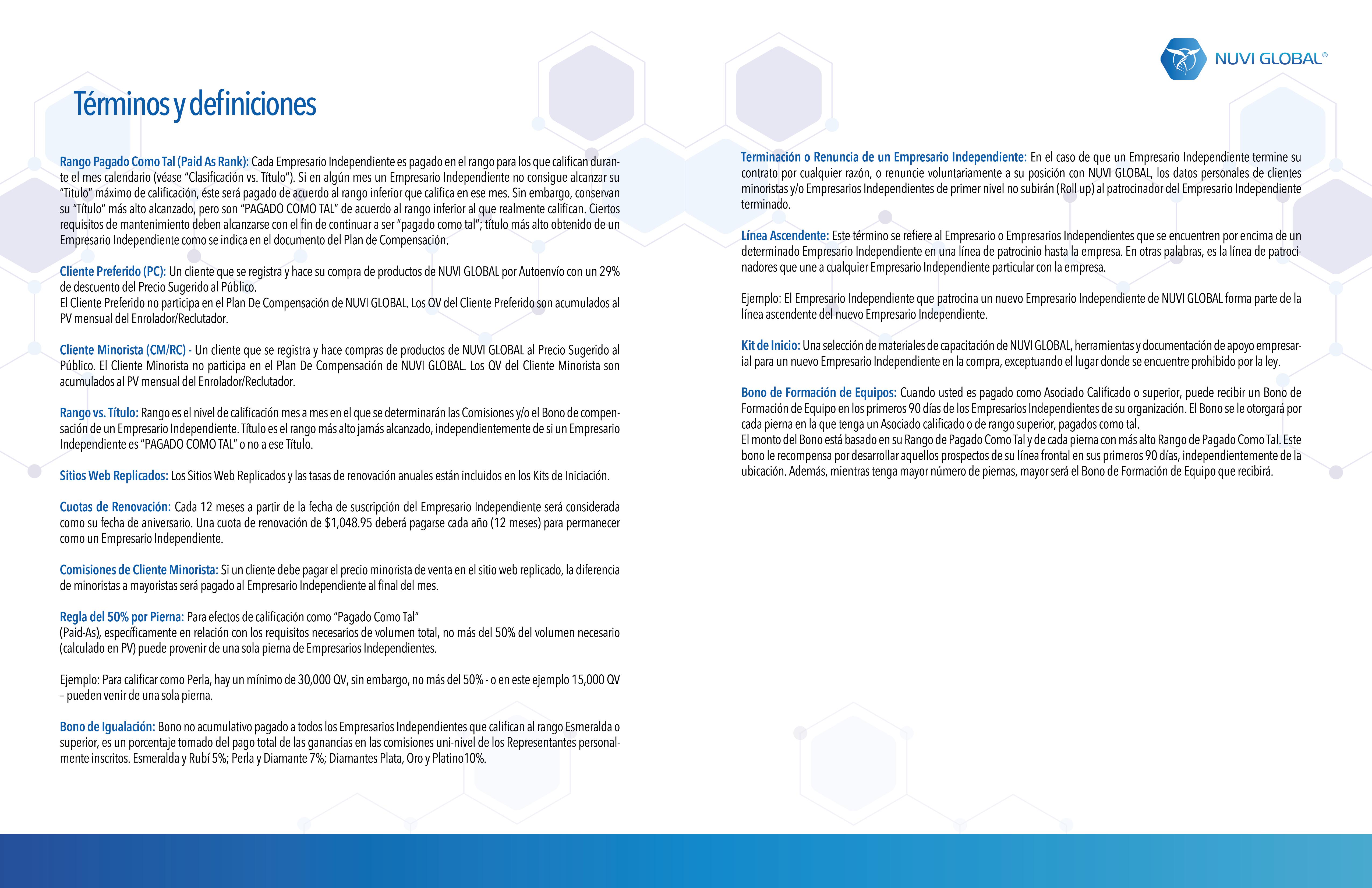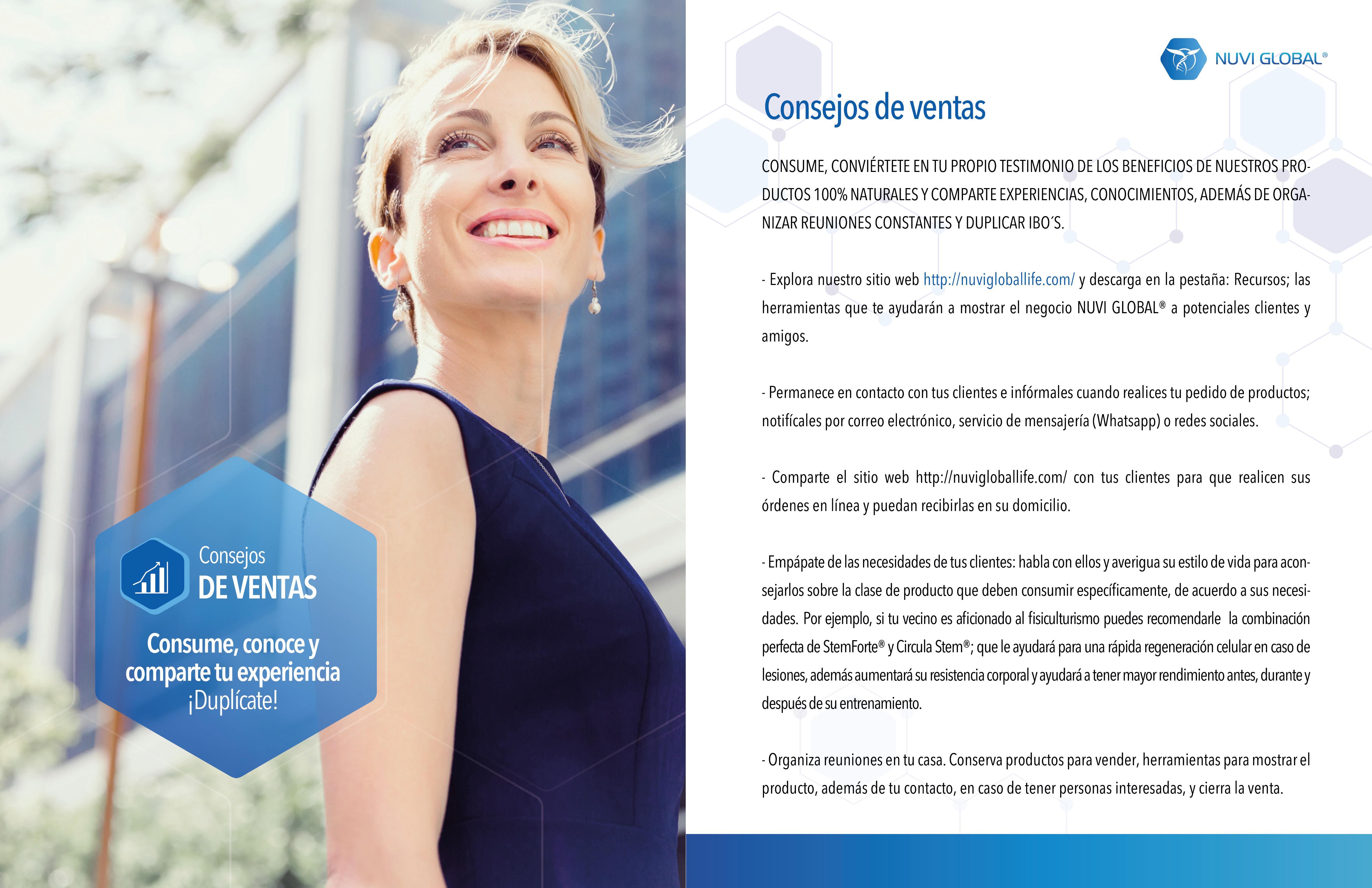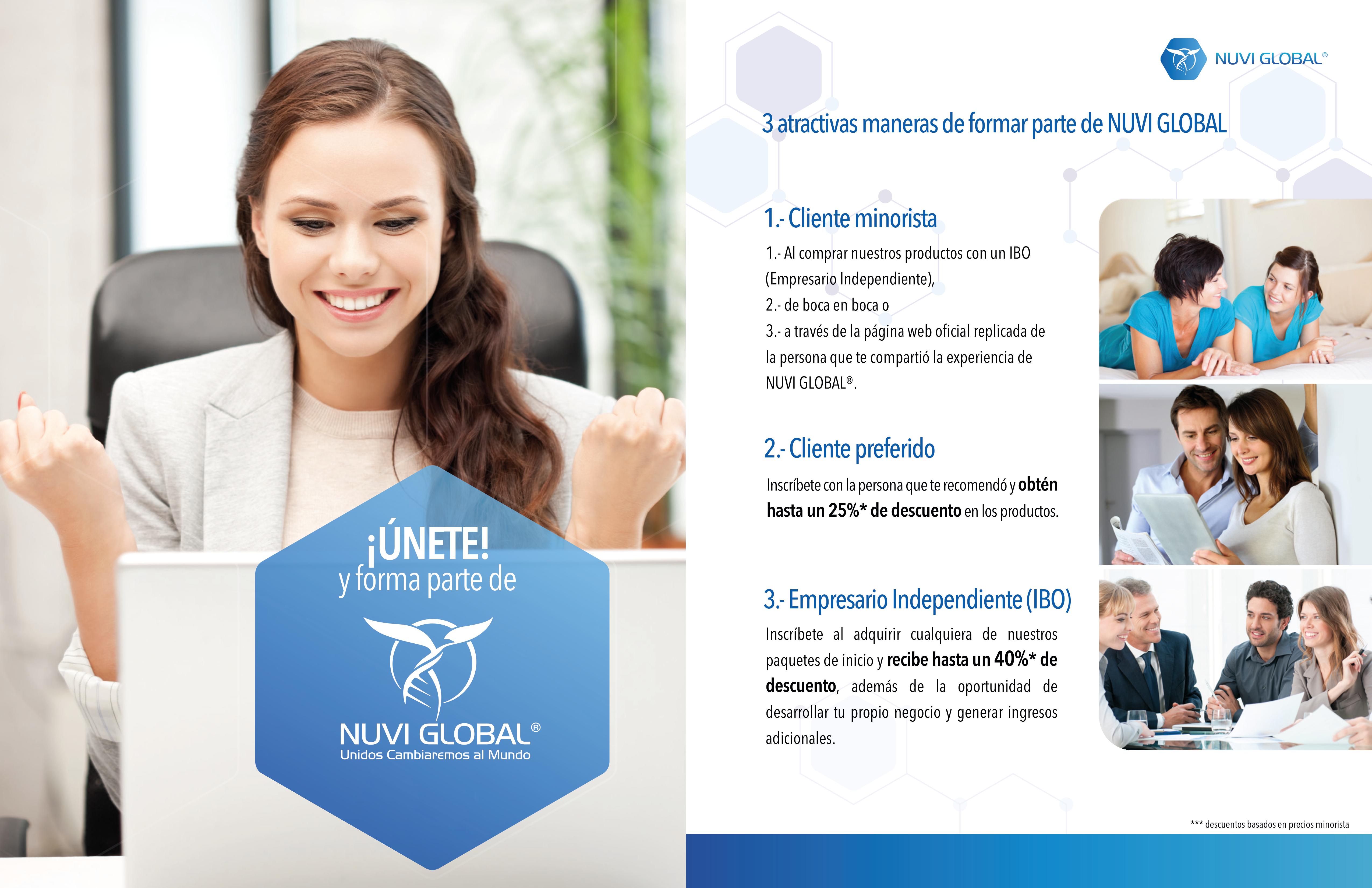 Para respuestas a preguntas detalladas sobre el plan de compensación de NuVi Global, puede contactar a su patrocinador o a la persona que le compartió esta oportunidad.